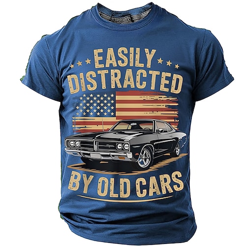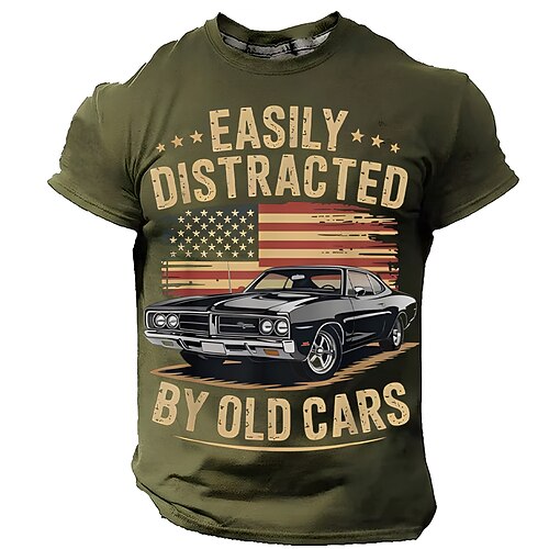 Festa del papà, facilmente distratto dalle vecchie auto, regalo per ragazzi amanti delle auto, classica muscle car, vintage, bandiera degli Stati Uniti, maglietta verde da uomo, abbigliamento,