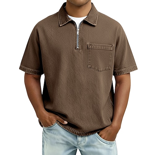 Per uomo Polo in Cotone Maglia da golf Abbigliamento quotidiano Data Zip a un quarto Manica Corta Moda Essenziale Semplice Cerniera Tasca Estate Primavera Primavera Estate Vestibilità regolare