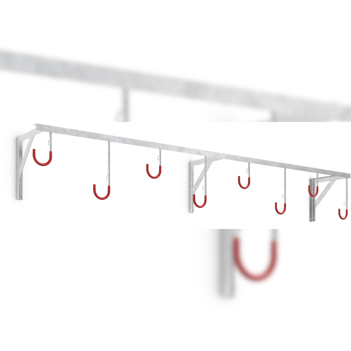 Hängeparksystem 3878 - Fahrradständer für 8 Fahrräder - Wandmontage | Reihen-Hängeparker | Stahl verzinkt & kunststoffummantelte Aufhänge-Haken