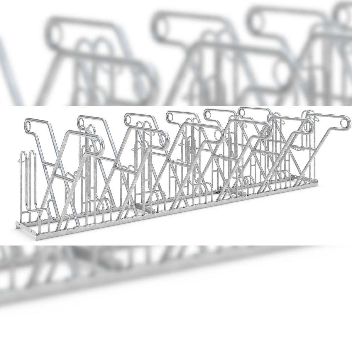 Bügelparker 2158 BF |Fahrradständer für 8 Fahrräder | beidseitiges Einstellen breiter Fahrräder | Abwechselnde Hoch-/Tiefeinstellung | erweiterbar