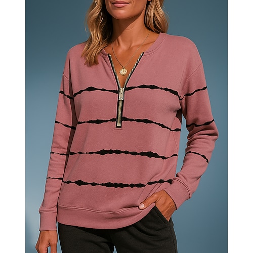 Per donna Felpa pullover Top casual Mezza cerniera Manica Lunga Top Athleisure Autunno Scollo a V A righe Di tendenza All'aperto Viaggio abbigliamento sportivo Abbigliamento sportivo Nero Bianco Rosa