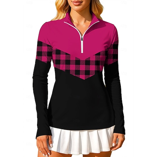 Per donna Blocco di colori A quadri Felpa Polo Top Maglietta Maglietta sportiva Manica Lunga Stampato Zip a un quarto Pullover UPF50 Resistente ai Raggi UV Protezione UV Elastico Traspirante