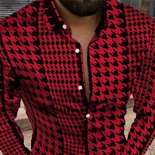 Per uomo Geometrica Vintage ▾ Camicia Camicia con bottoni Manica lunga Di tendenza Originale Informale Giornaliero Per eventi Fine settimana Primavera estate Collo ripiegabile 3D Bottone giù Nero