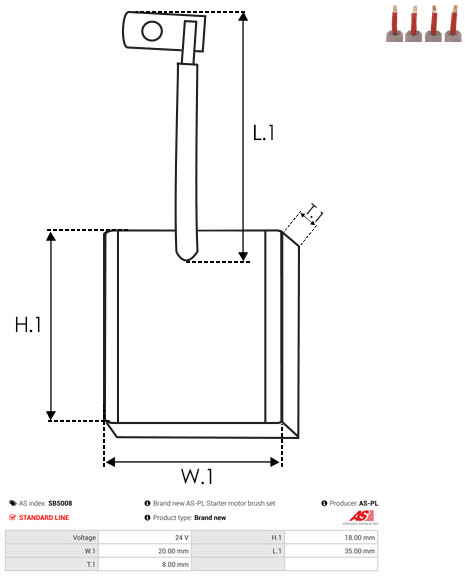 AS-PL Kohlebürste, Starter SB5008 Universal 24V für MITSUBISHI MAZDA NISSAN JASX38 FJ177 0706-24-556