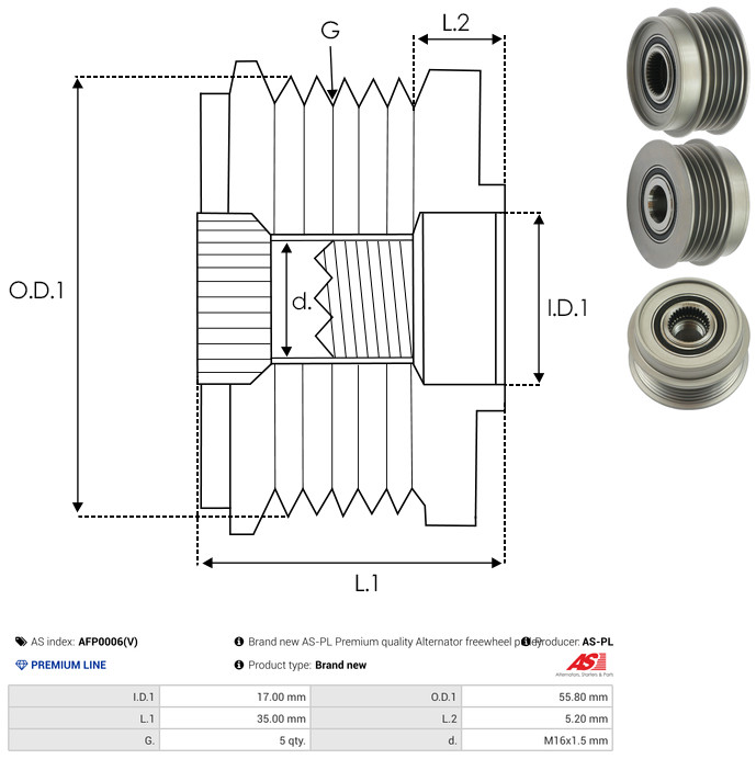 AS-PL Generatorfreilauf AFP0006(V) für VW 028903119AN 28903165 028903165