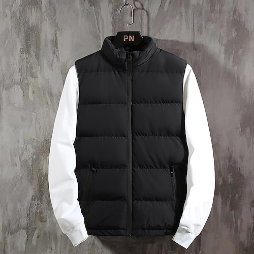Per uomo Gilet imbottito Gilet Vacanza Quotidiano Data Moda Casual Autunno Inverno Tasca Poliestere Caldo Confortevole Tinta unica Cerniera Collo alla coreana Vestibilità regolare Nero Verde chiaro