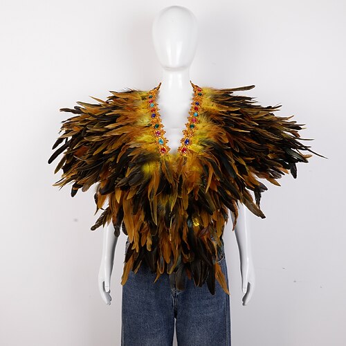 Accessori Samba del Carnevale 2026 Rio Carnevale Cappotto Sciarpa in Piume per Mardi Gras in Viola Verde Oro Poncho in Piume con Collare Gioiello per Donne Costume per Performance al Festival del