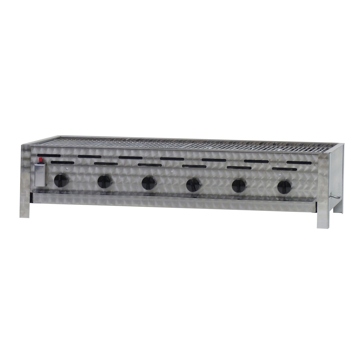 Gastrobräter, 6 Brenner je 3,6 kW, mit Grillrost 2-teilig, B 1140 x T 530 x H 270 mm, inkl. Gewerbedruckregler u. Schlauchbruchsicherung