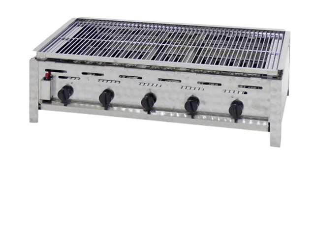 Gastrobräter, 5 Brenner je 4,5 kW, Lavasteineinsatz u. Grillrost, B 980 mm x T 530 mm x H 270 mm, inkl. Gewerbedruckregler u. Schlauchbruchsicherung