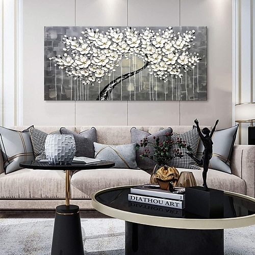 Hang-Dipinto ad olio Dipinta a mano Panoramica orizzontale Floreale / Botanico Moderno Senza telaio interno (senza cornice)