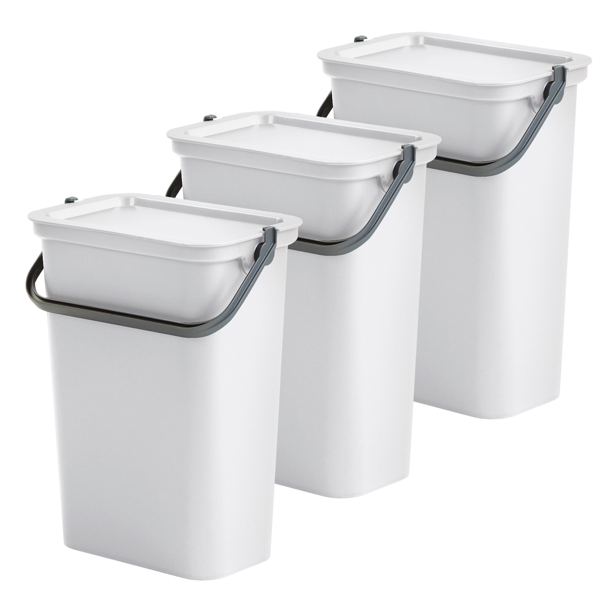 WellHome - 3x10L Mülleimer-Set mit Griff, Fashion Collection, Weiß