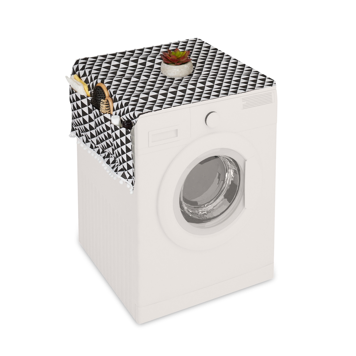Relaxdays Waschmaschinenauflage mit Taschen, Polyester, Abdeckung Waschmaschine, Trockner, Kühlschrank, schwarz/creme