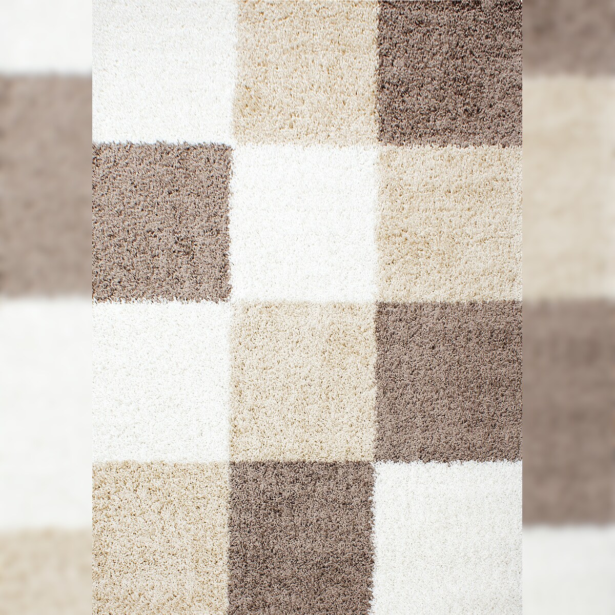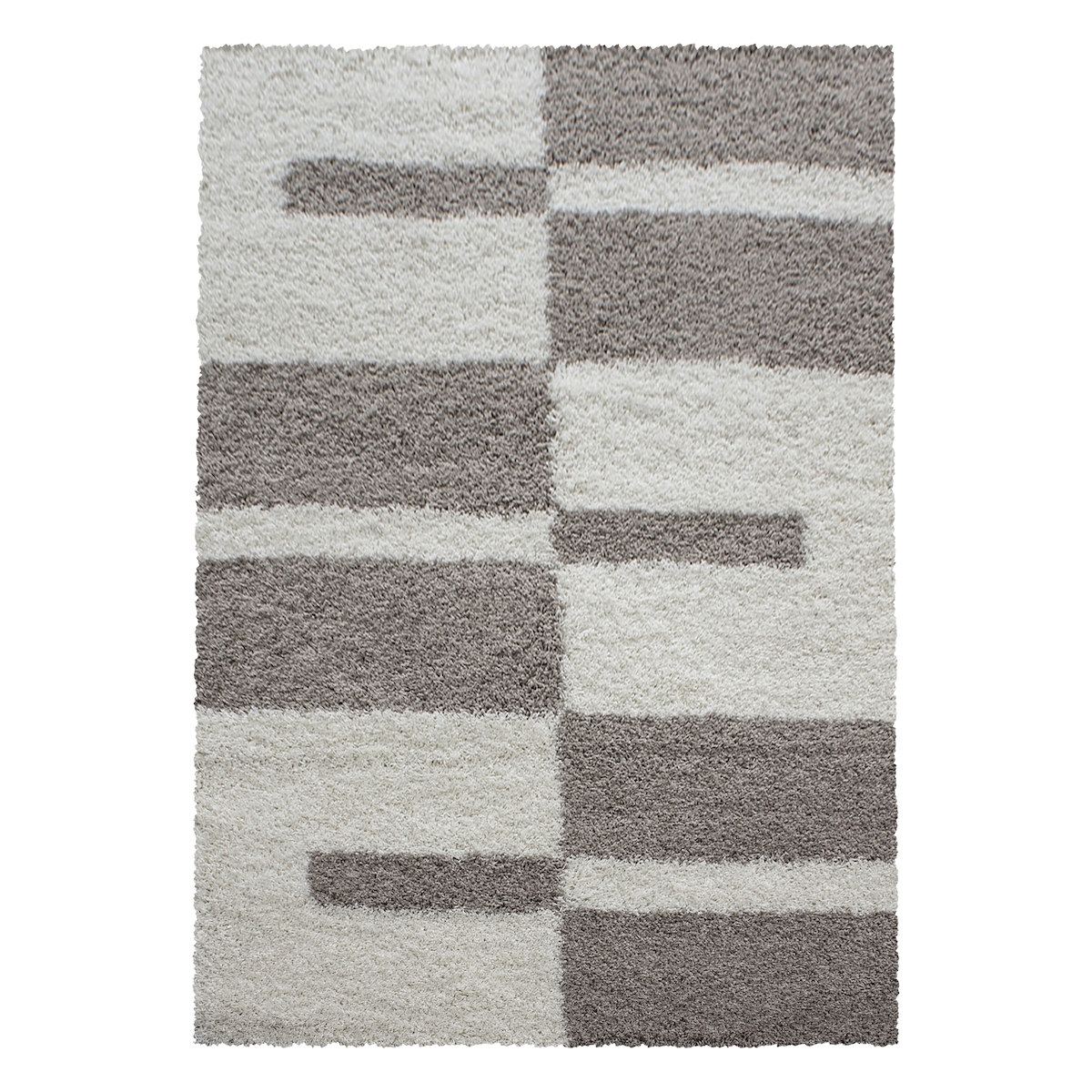 Teppich Hochflor Karo Polypropylen Wohnzimmer Shaggy Mokka Rechteckig 160x230 | Kadima Design