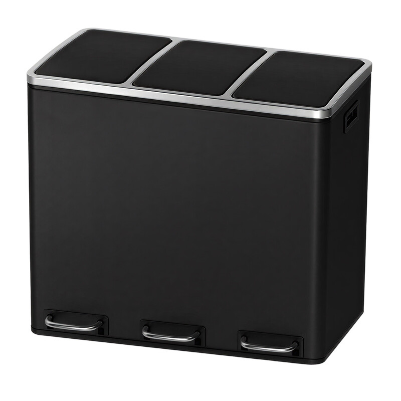 SONGMICSHOME Triple Recycling Bin, 3 x 18L Pedal Waste Bins with Soft-Close Lids, Steel, for Kitchen, Black