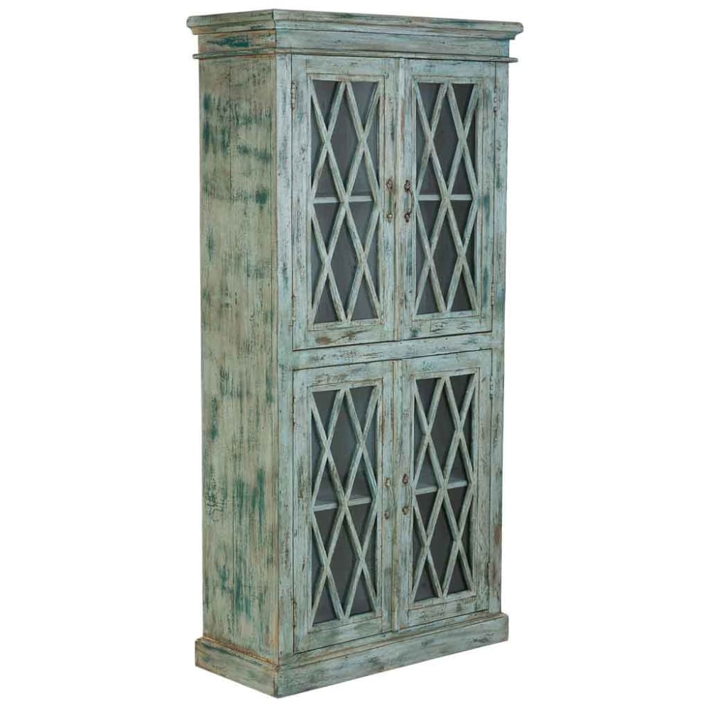 Vetrina in legno e vetro con 2 ante, 90x40x183h cm blu