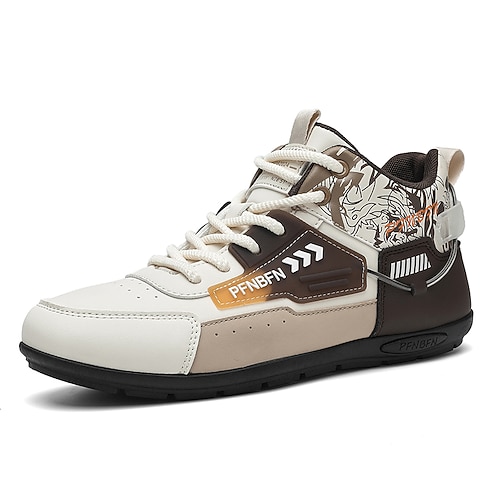sneakers casual beige da uomo con dettagli neri, scarpe stringate leggere e comode, ideali per l'uso quotidiano, la palestra e le attività all'aperto