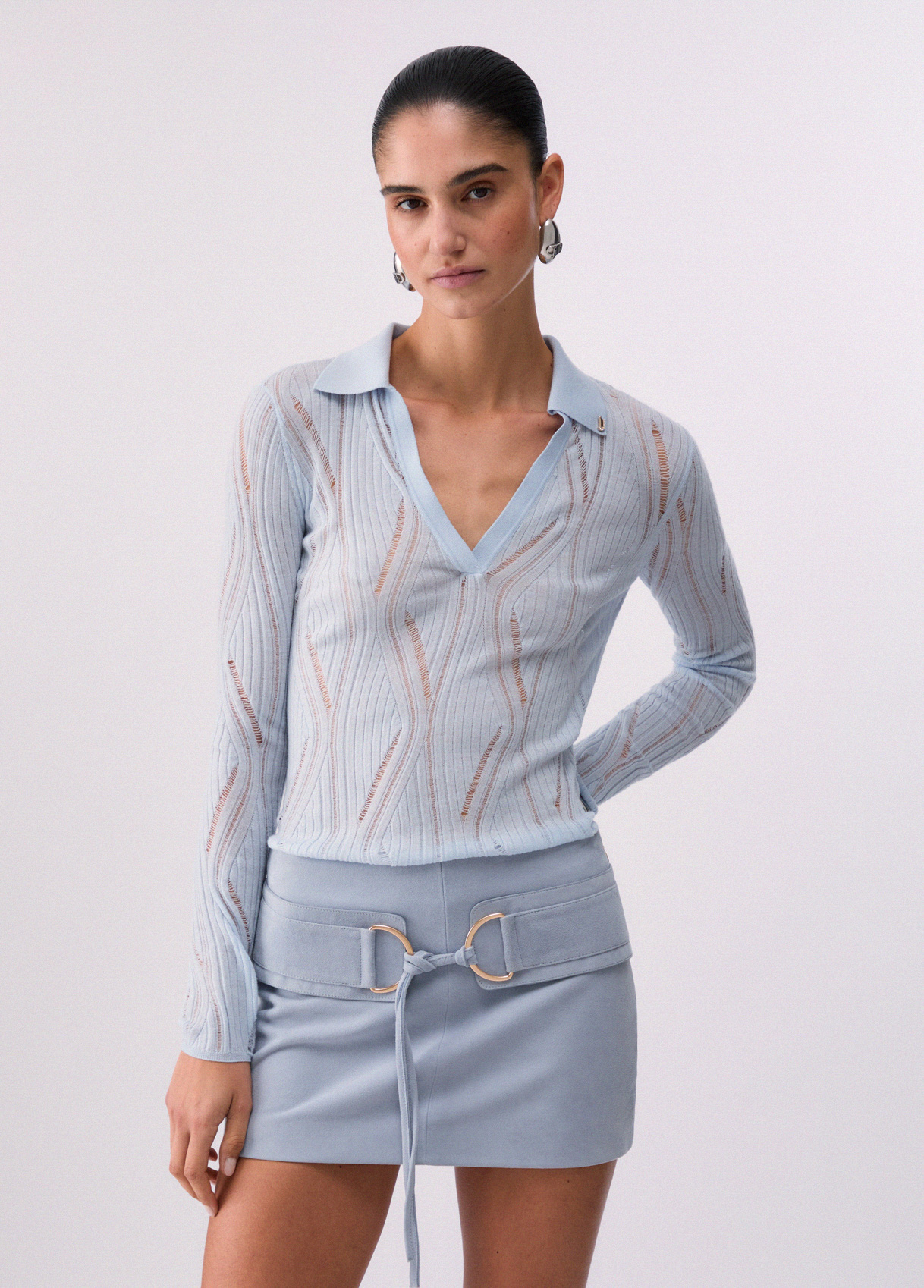 Liu Jo T-shirt In Maglia, Azzurro Polvere, XXXL