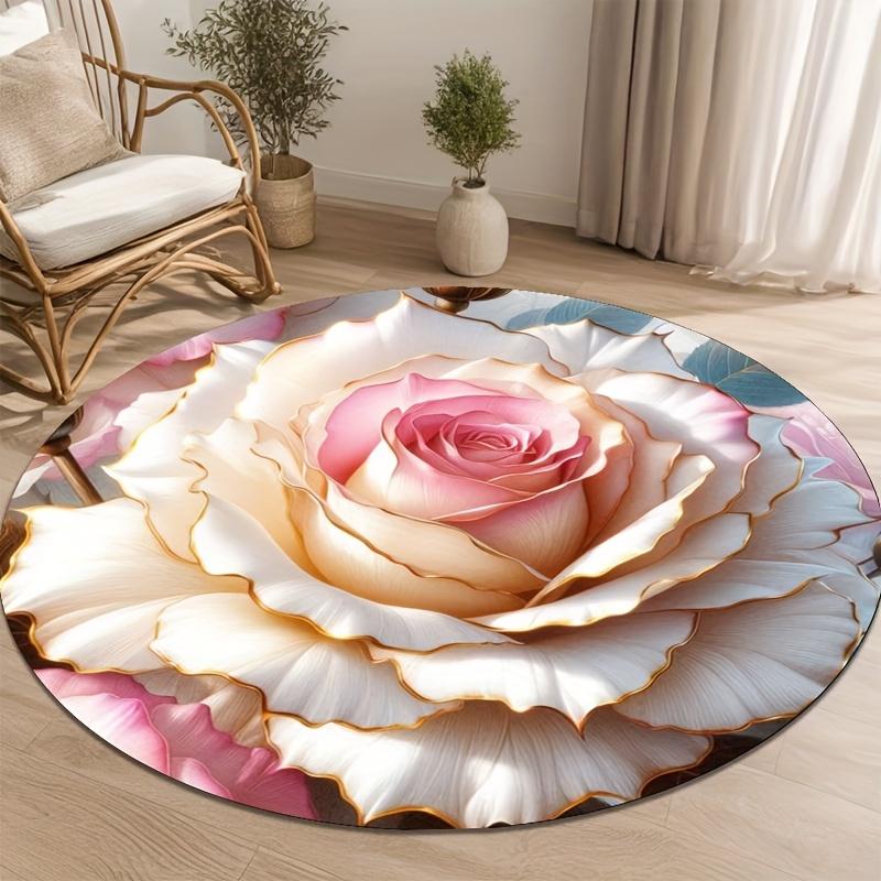 Luxurious Golden Edge Rose Pattern Round Shape Floor Mats Kitchen Hallway Runner Rug Bedroom Living Room Soft Carpet Non-slip Area Rug multicolour