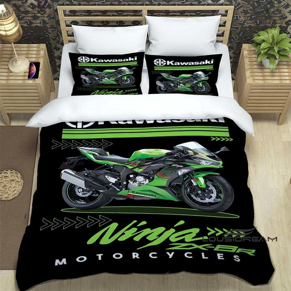 3D Retro Druck K-Kawasaki Motorrad Logo Bettwäscheset Elegantes Bettwäscheset Bettbezug Bettquiltbezug Luxus Geburtstagsgeschenk