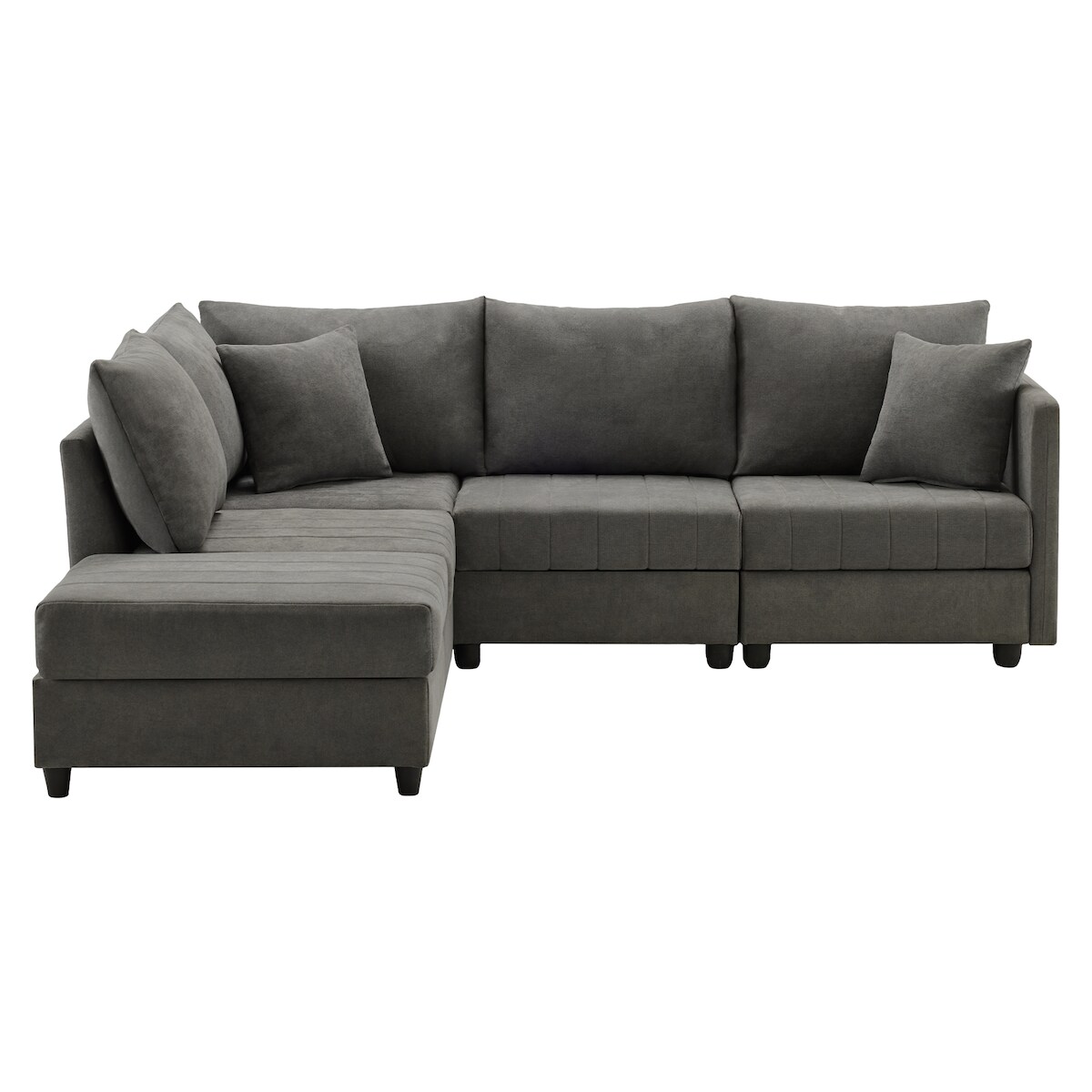 OKWISH Modulares Sofa 220x194 cm aus Baumwolle und Leinen mit umwandelbarem Fußhocker – elegantes Design und hoher Komfort Grau