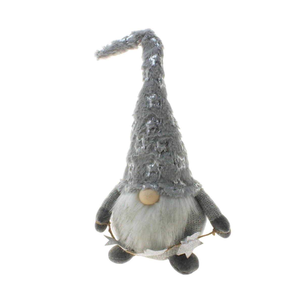 WellHome - Grauer Weihnachtsdeko-Zwerg mit hoher Mütze im nordischen Stil