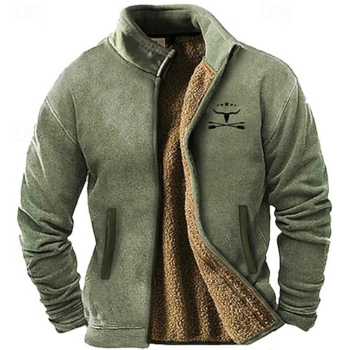 Per uomo Maglia Felpa con zip Felpa in pile Felpa con zip intera Marrone Verde Colletto Mao Mucca Con zip Tasca Sport Outdoor Quotidiano Ferie Poliestere Vintage Streetwear Casual Autunno Inverno