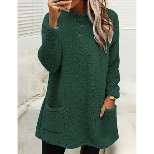 Per donna Felpa Pullover Tinta unica Sportivo Pagliaccetto Essenziale Manica lunga Rotonda Girocollo Maglie lunghe Strada Informale Tasche Marron Nero Bianco Verde chiaro Rosa Autunno inverno