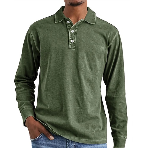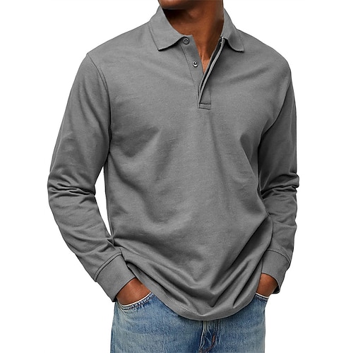 Per uomo POLO Camicia da golf Golf Informale Bavero Manica lunga Di tendenza Essenziale Tinta unica Pulsante Stile vintage Primavera Autunno Standard Marrone Scuro Nero Bianco Borgogna Blu marino