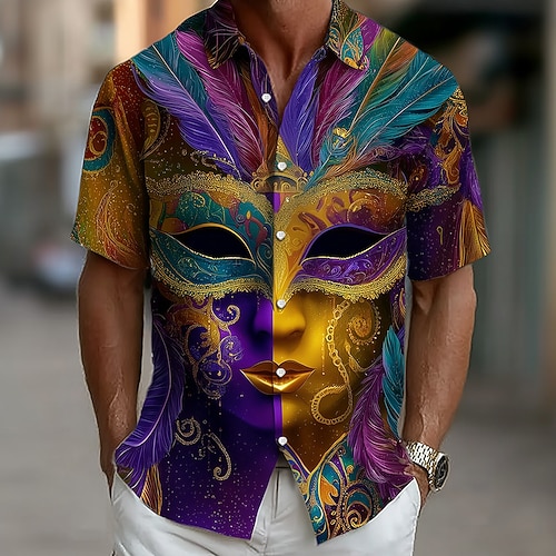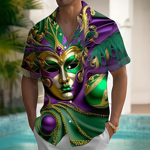 Martedì grasso Per uomo Maschera Carnevale Perline Camicia Camicia Estiva Camicia con Bottoni Manica Corta Moda Casual Feste Ferie Estate Primavera Collo ripiegato Stampa 3D camicie con colletto Una