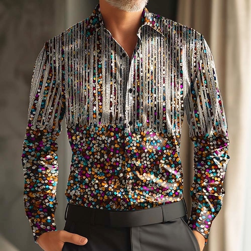 Martedì grasso Per uomo Carnevale Perline Maschera con piume Camicia Camicia in raso Camicia elegante Manica Lunga Moda Casual Feste Ferie Estate Primavera Collo ripiegato Stampa 3D Camicie con