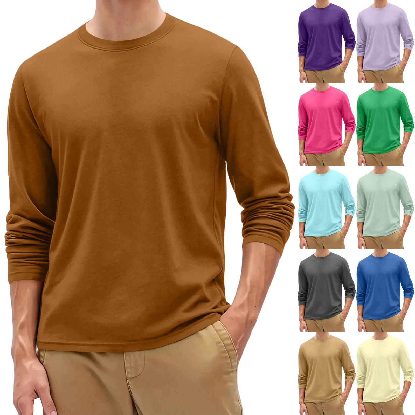 Men's Basic Round Neck Long Sleeve Bottoming Shirt Top cm khaki
