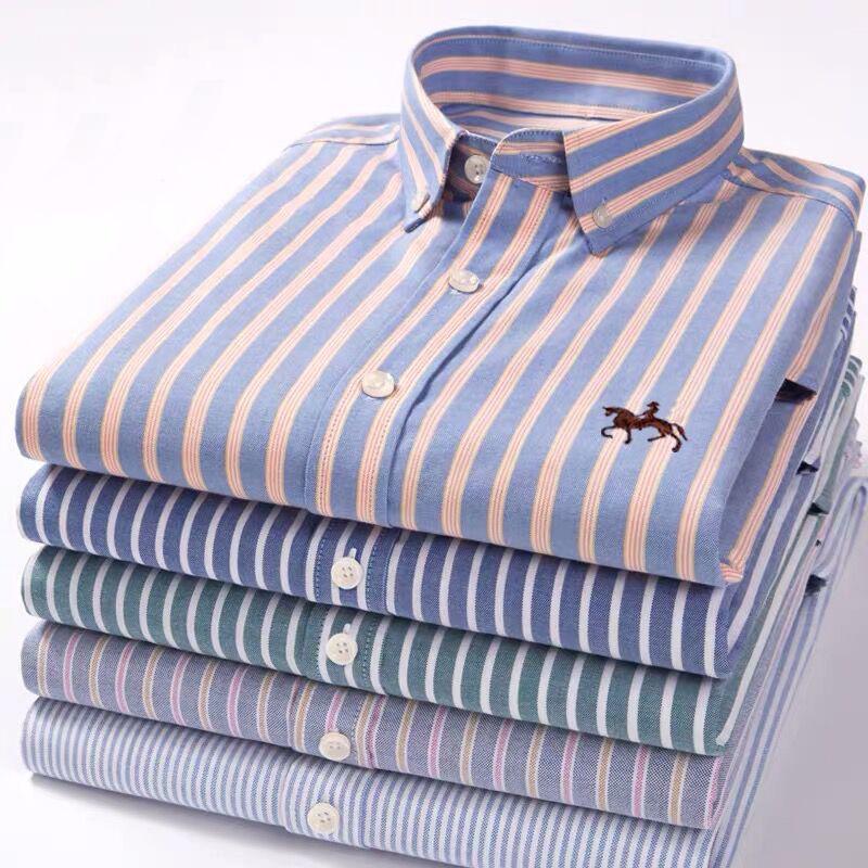 Men's Long Sleeve Striped Cotton Oxford Shirt - Casual Business Wear cm