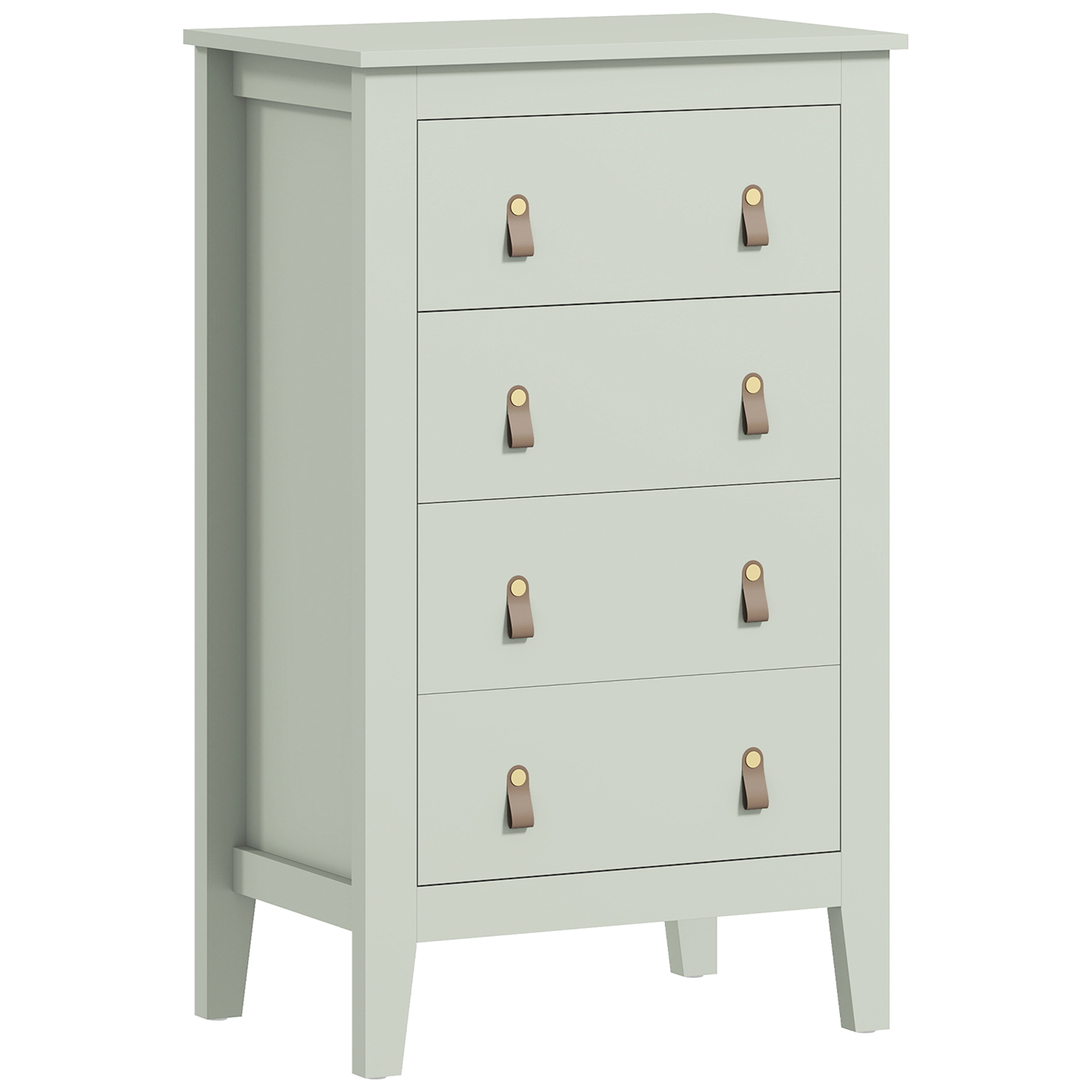 HOMCOM Bedroom Chest of Drawers, Modern 4 Drawer Dresser Cabinet with PU Leather Handles and Metal Runners for Living Room, Hallway, Entryway, Green