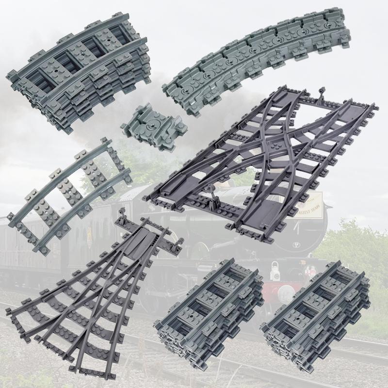 Stadtbahn Teile Schienen Bahnhof Steine Eisenbahn Prellbock Modell Schienen Gerade Kurvige Schienen Bausteine MOC Spielzeug