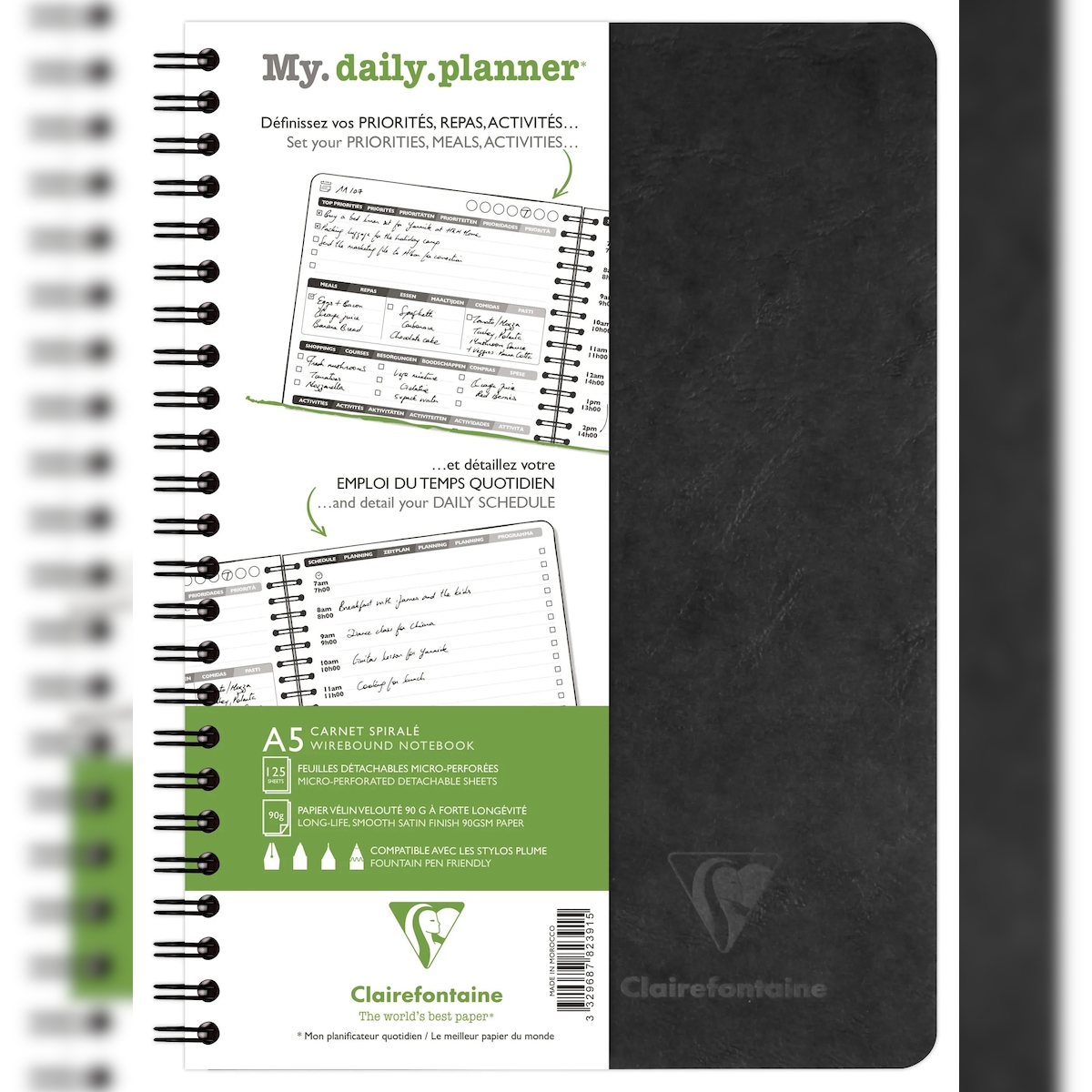 Clairefontaine 5x Age Bag, My.daily.planner, Spiralbuch A5, 250 abtrennbare Seiten (125 Blatt) 90g - Schwarz 782391C