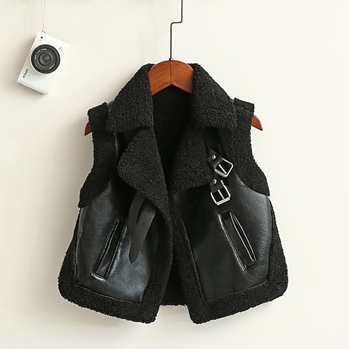 Bambini Ragazzi Giacca in pelle nera Giacca in pile Gilet Giacca di pelle Capispalla Semplice Manica Lunga Con zip Tenere al caldo Antivento Cappotto Quotidiano Moda Casual Nero Primavera Autunno