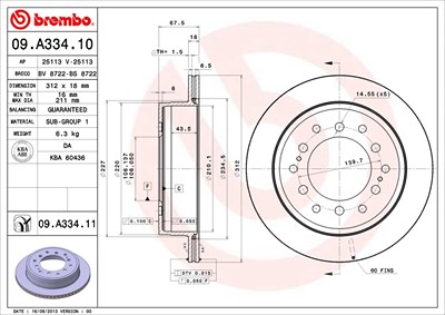 Brembo Bremsscheibe Hinterachse Belüftet [Hersteller-Nr. 09.A334.11] für Toyota, Lexus