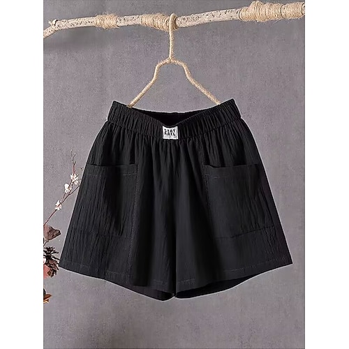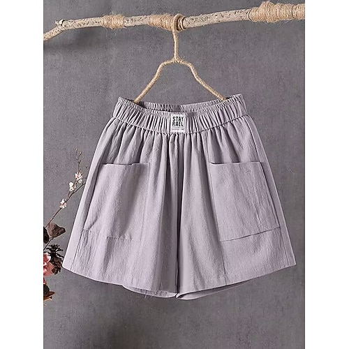 Per donna Pantaloncini in cotone e lino Pantaloncini Estivi Shorts da Spiaggia Pantaloncini larghi Vacanza Essenziale Casual Corto Vita Alta Semplice Tasca Fascia Elastica Comodità Asciugatura Rapida