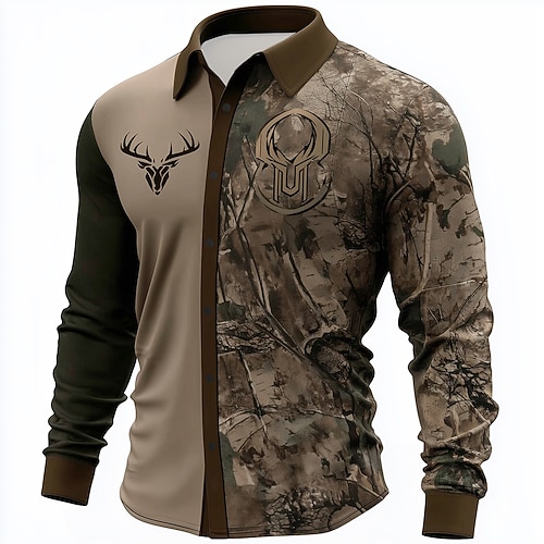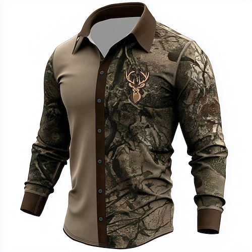 Per uomo Renna Natura e paesaggi foresta Camicia Camicia con Bottoni Manica Lunga Vintage Retrò All'aperto Campeggio Escursionismo Caccia Primavera Autunno Collo ripiegato Stampa 3D camicie con