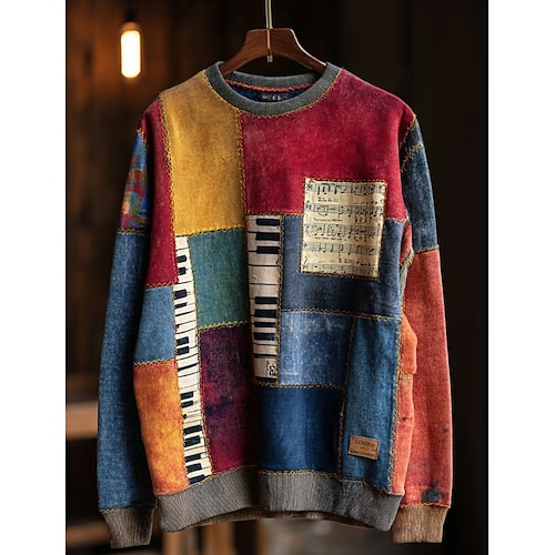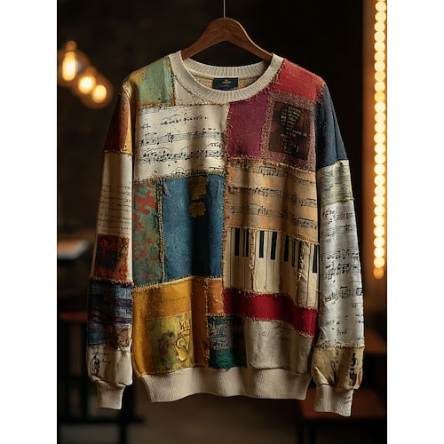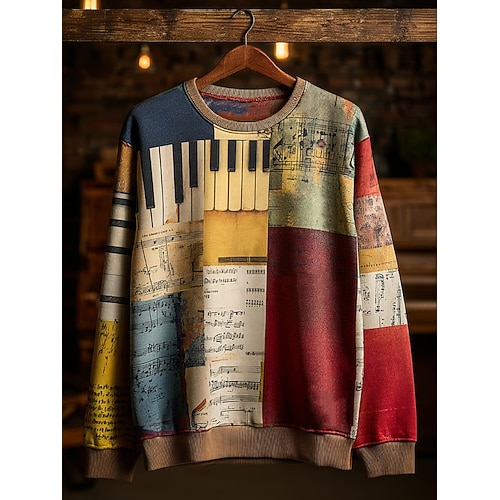 felpa da donna con musica per pianoforte grafica a righe astratta casual manica lunga girocollo top normali casa lavoro strada patchwork giallo verde chiaro rosso blu arancione primavera autunno