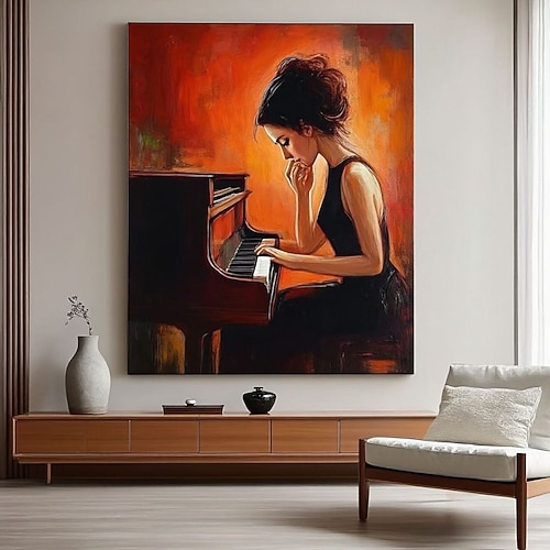 dipinto a olio fatto a mano su tela decorazione artistica da parete figure astratte ragazza che suona il pianoforte per la casa decorazione dell'aula di musica cornice tesa dipinto appeso/dipinto
