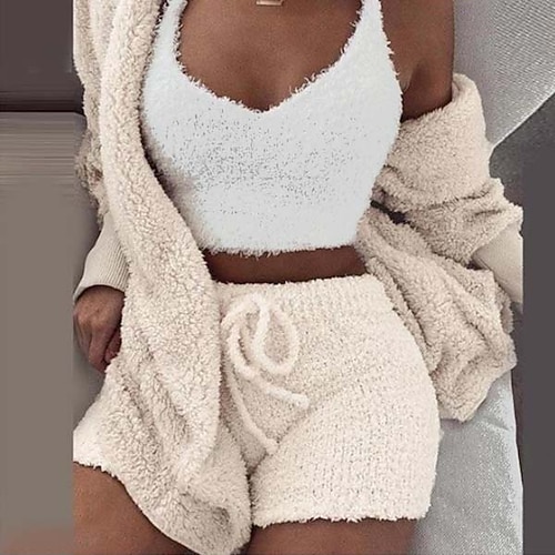 Per donna Caldo Regalo Pigiami Completi Interni Feste Strada San Valentino Poliestere Felpato Semplice Morbido Sport Senza maniche Pantaloncini Autunno Manica lunga Senza maniche