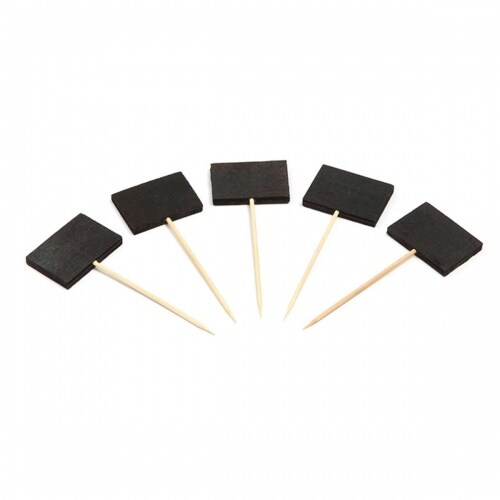 Mank 100x Picker mit Kreidetafel aus Holz, 35 x 25 / 90 mm - Dekopicker Holzpicker