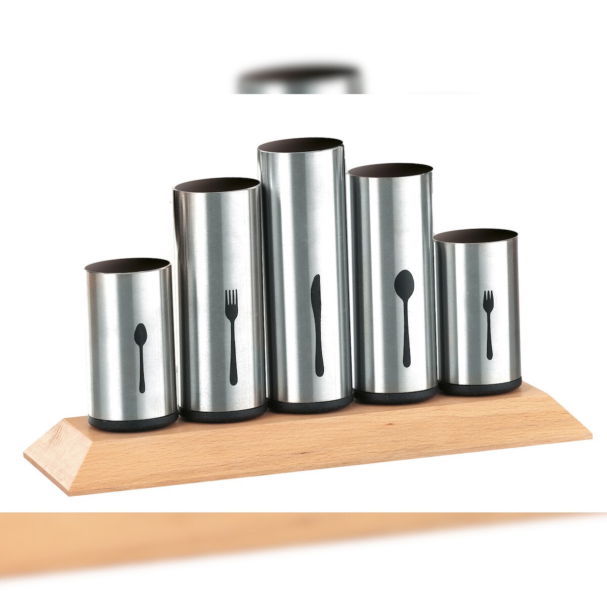 Caterado Besteckhalter PIPES, Material: Edelstahl 18/8 und Buchenholz Maße: ca. 30 x 10 x 16,5 cm.