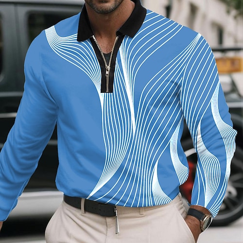 Per uomo Geometrico Linea Polo Manica Lunga Magliette polo Bavero Business Casual Athleisure Abbigliamento quotidiano Stampa 3D Polo con cerniera a un quarto Primavera Autunno Inverno Nero Bianco Blu