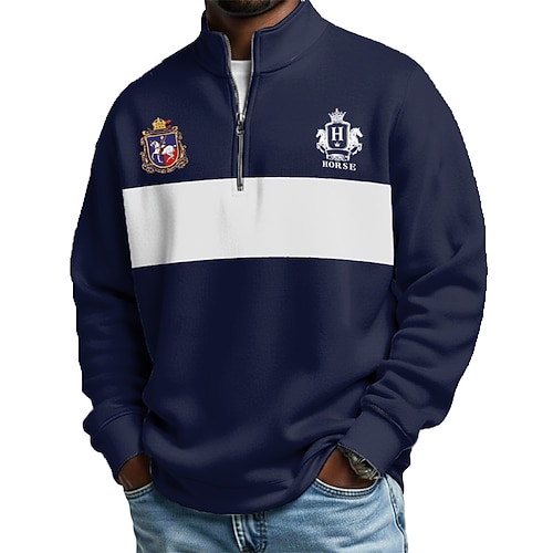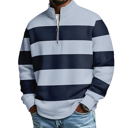 Per uomo Strisce orizzontali Polo con zip Manica Lunga Magliette polo Colletto alla coreana Casual Scuola Athleisure Ferie Abbigliamento quotidiano Stampa 3D Polo con cerniera a un quarto Primavera