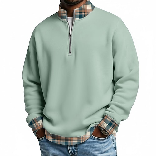 Per uomo Plaid Patchwork Polo con zip Manica Lunga Magliette polo Colletto alla coreana Casual Scuola Athleisure Ferie Abbigliamento quotidiano Stampa 3D Polo con cerniera a un quarto Primavera