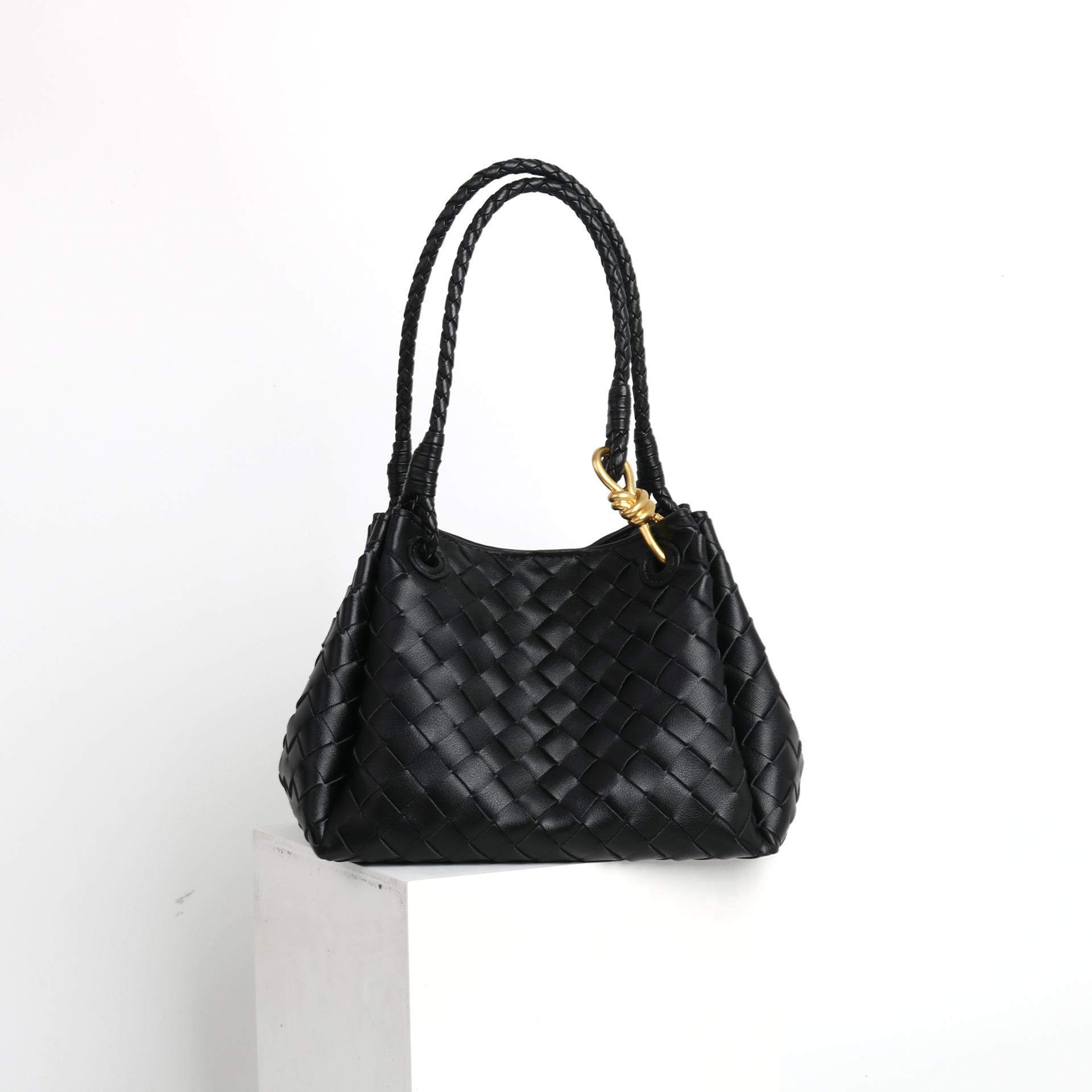 New metal rope buckle leather woven bag parachute bag Shu Qi same portable vegetable basket large capacity