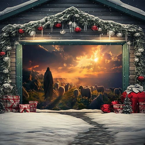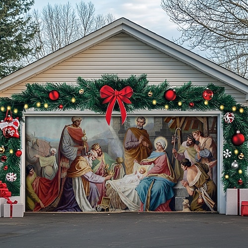 copertura per porta da garage esterna natalizia banner natalizio scena della natività grande fondale natalizio decorazione per festa porta da garage esterna decorazioni da parete per la casa