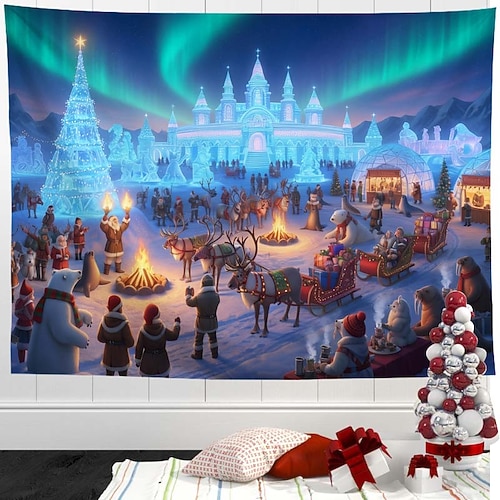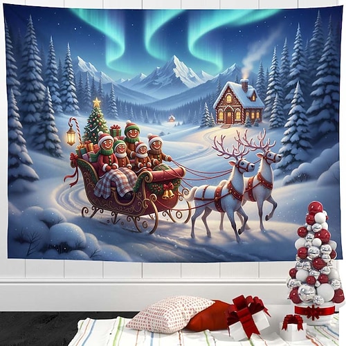 Copertura per porta da garage con aurora boreale natalizia – decorazione festiva per le feste, tenda da garage invernale con aurora boreale e Babbo Natale per l'esterno della casa